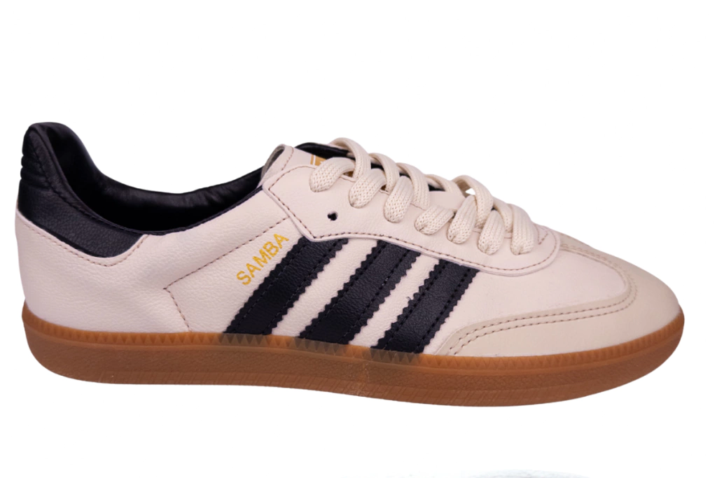 O Adidas Samba bege com detalhes em preto é a combinação perfeita entre conforto e estilo. Este modelo icônico é ideal para quem busca um visual moderno, sem abrir mão do conforto para o dia a dia.