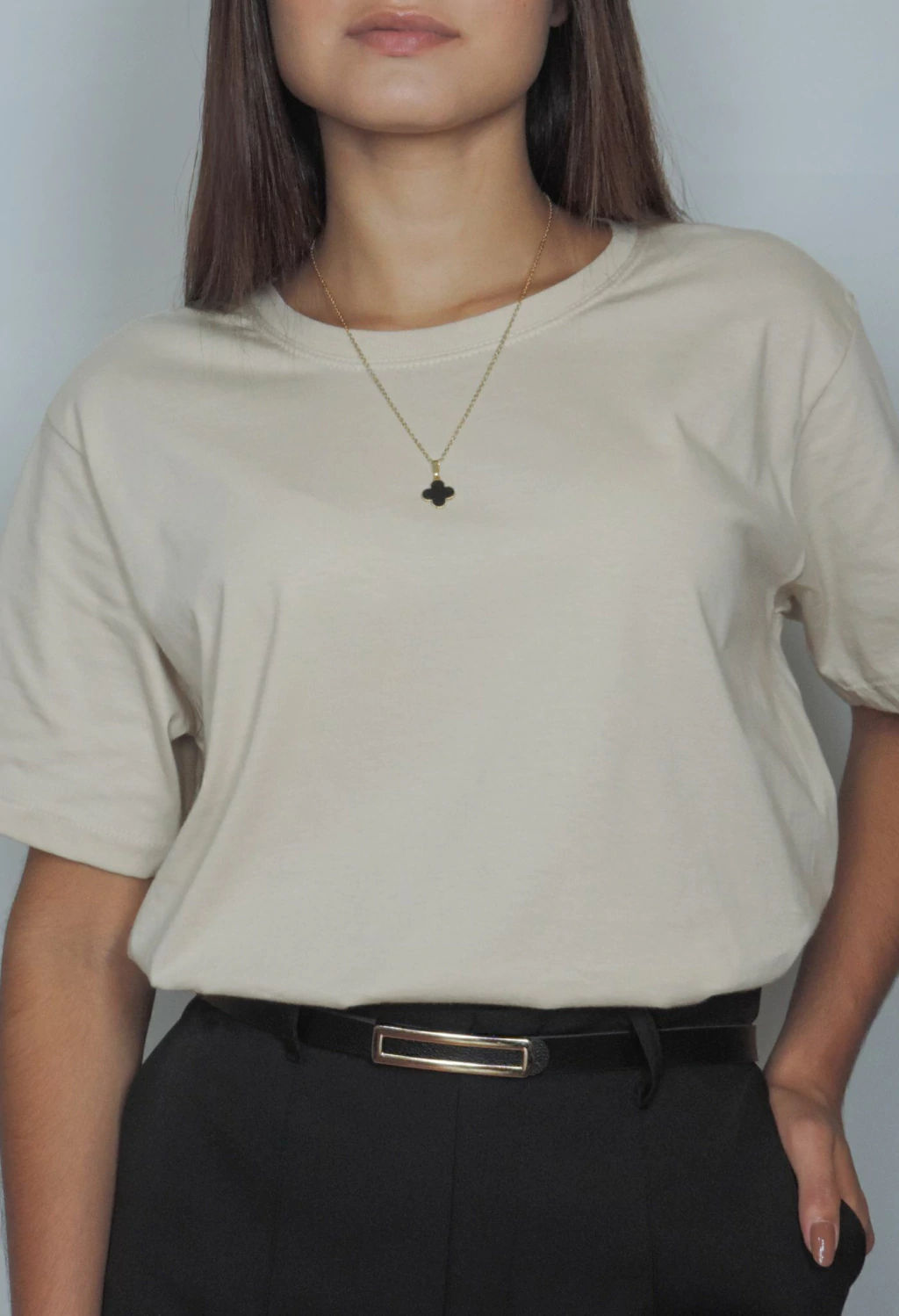 A camiseta básica bege é a peça curinga que não pode faltar no seu guarda-roupa. Confeccionada com tecido de alta qualidade, ela oferece conforto, durabilidade e um caimento perfeito. Feita em 100% algodão, é ideal para todas as ocasiões, seja para um visual casual ou para compor looks mais elegantes com sobreposições.